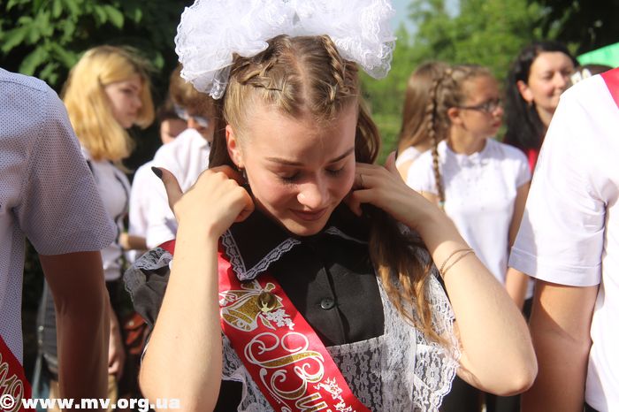 Не сдерживая слез, слова напутствия им говорила заместитель сельского головы Юлия Дузь. Но больше всего плакали и взрослые, и дети, когда педагоги надевали на одиннадцатиклассников выпускные ленты.