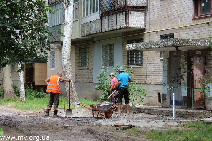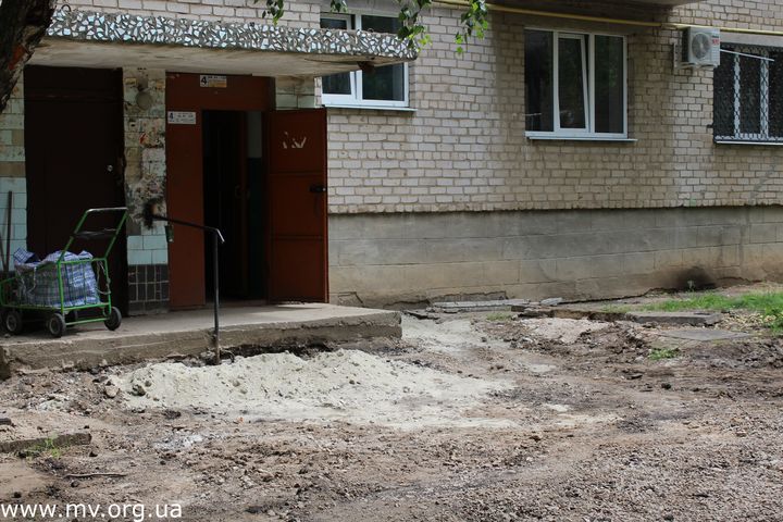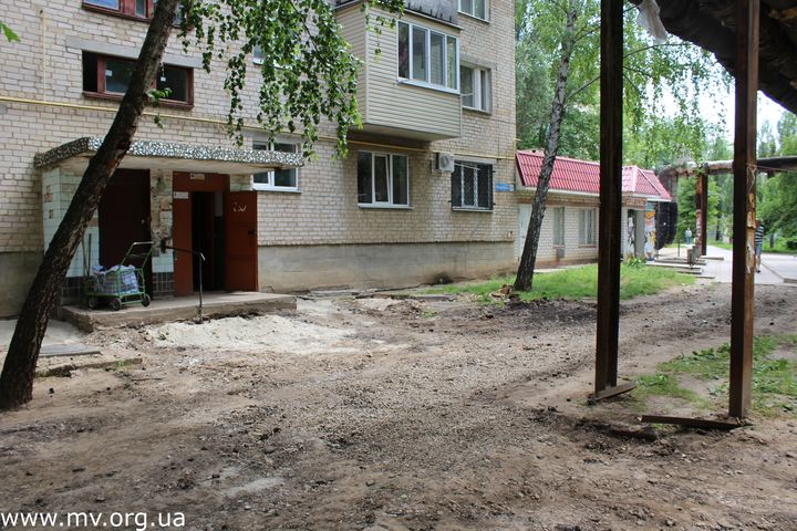 Сейчас здесь ведется капитальный ремонт придомовой территории. Старое асфальтное покрытие сняли полностью как на дорожках и тротуарах, так и около подъездов. Стороной не обошли и подъезд №3. Корни дерева, растущего рядом, срезали, и готовятся к укладке асфальта. Жильцы же переживают, чтобы новое покрытие не постигла участь старого.