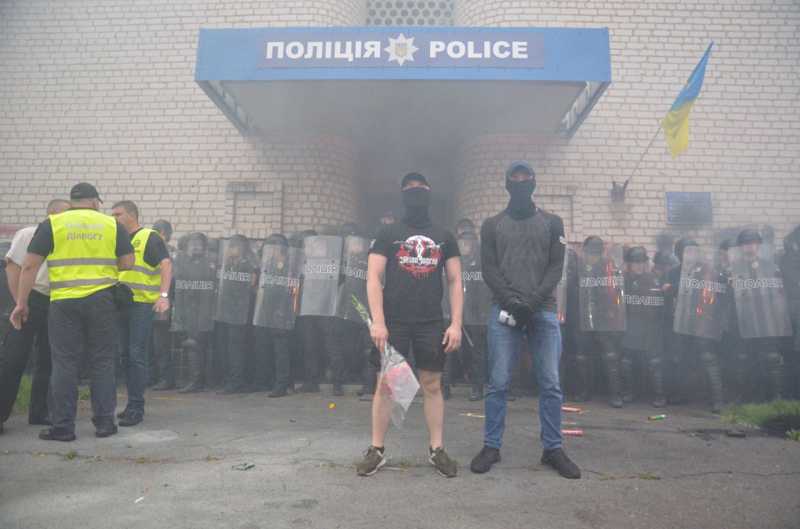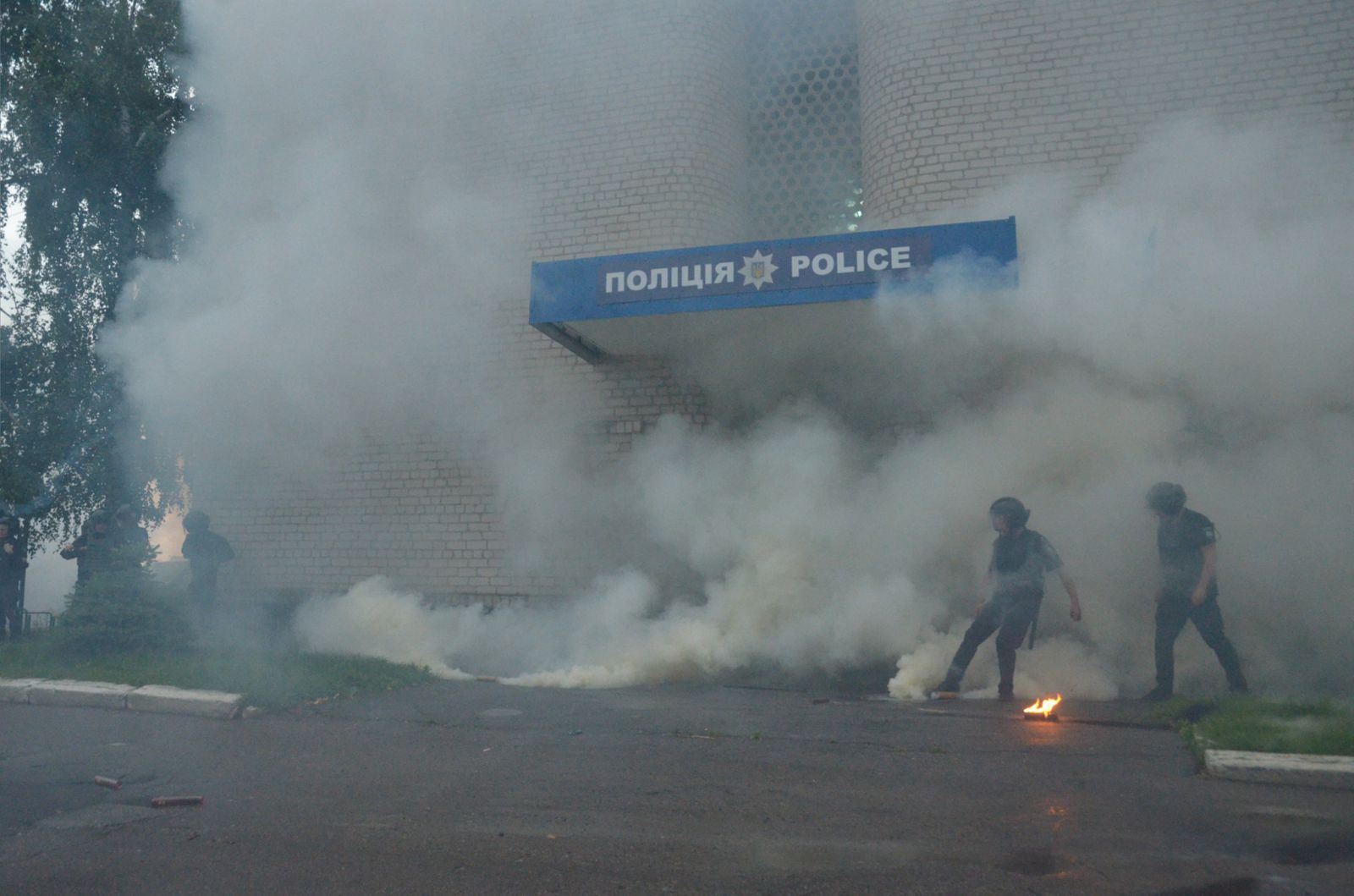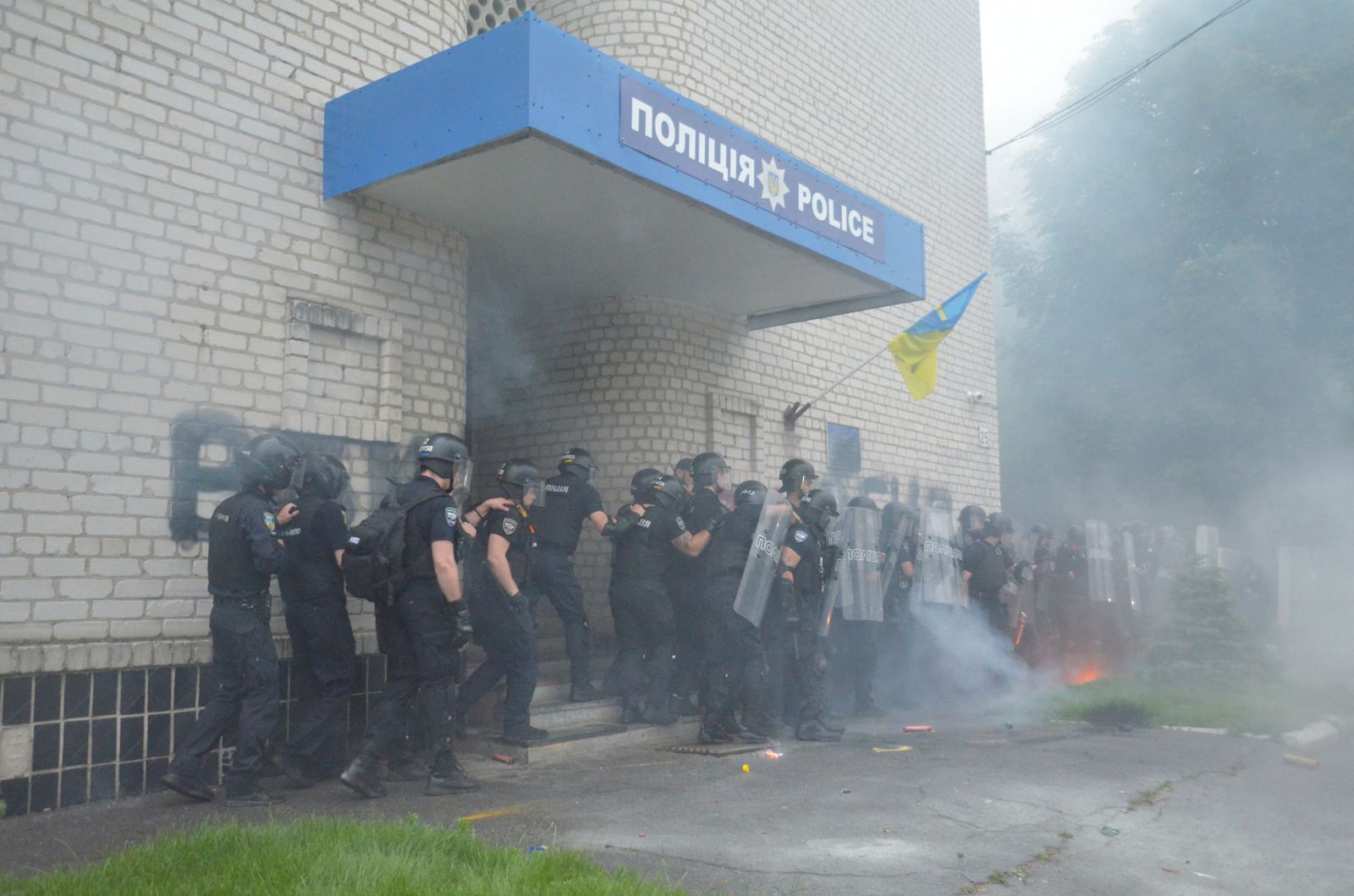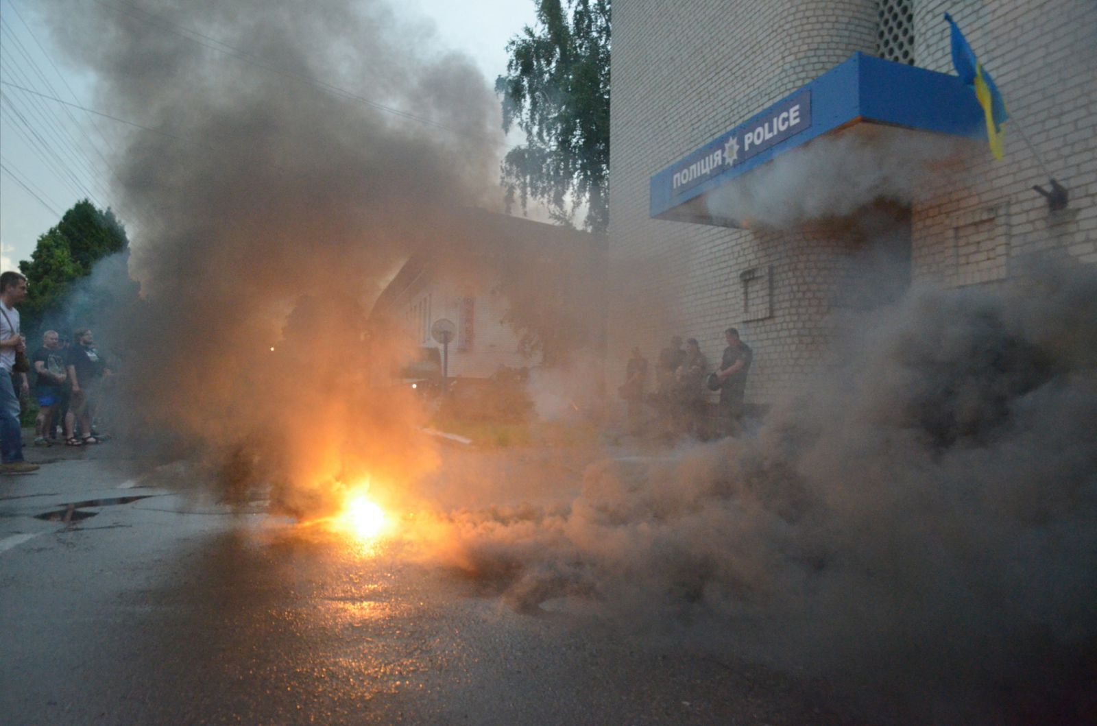 В Переяславе-Хмельницком активисты забросали отделение полиции петардами и дымовыми шашками