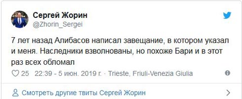 Судя по твиту самого Алибасова, адвокат чуть ошибается в сроках: по версии Бари Каримовича, они ходили оформлять завещание 19 декабря 2013 года, то есть менее 6 лет назад. Но сути дела это не меняет.