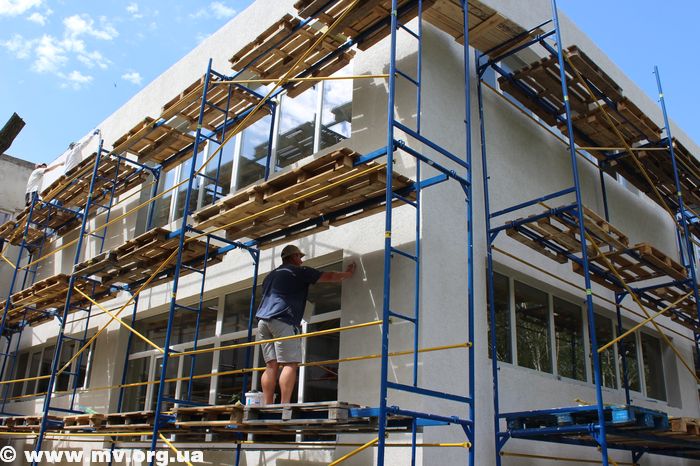На прошлой неделе начались ремонтные работы по утеплению мелитопольских школ и детских садов. В лесах сегодня дошкольные учреждения №№ 41 и 47, а также ООШ № 1.