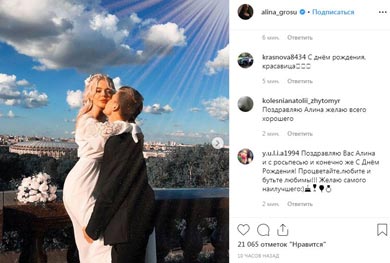 В свой 24-й день рождения, 8 июня, певица Алина Гросу заявила, что вышла замуж. Об этом звезда объявила в соцсети Instagram.