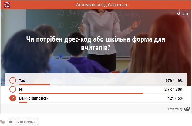 Популярный образовательный портал решил спросить у украинцев, нужен ли единый дресс-код учителям. Этим вопросом интернет-рессурс задался после того, как в сети широко обсуждался вопрос о необходимости школьной формы для учеников.
