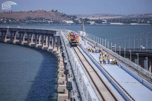 В аннексированном Крыму оккупанты осуществили стыковку рельсов железнодорожных путей на арке Керченского моста.