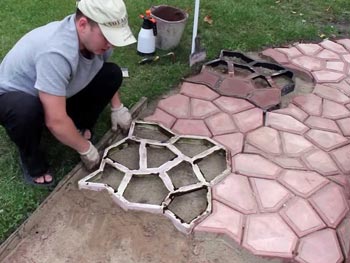 * Некоторые кладут формы с плитами сразу на дорожку и оставляют просыхать прямо на месте. Этот вариант уместен, если у вас нет животных, способных испортить фактуру будущей брусчатки. Кроме того, дорожку придется защищать от дождя, чтобы плитка не размокла.