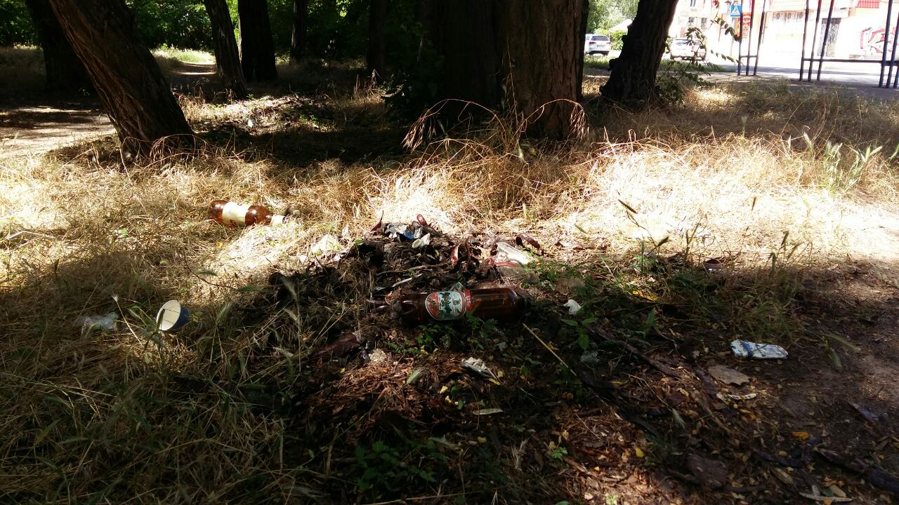 Нынче зеленая зона парка, что со стороны ул. И. Алексеева, местами напоминает свалку: сухие ветки, пустые пивные бутылки и сигаретные пачки, пластиковые стаканчики и пакеты, битое стекло. И, судя по постам и комментариям горожан в социальных сетях, в таком состоянии этот участок находится уже не первый месяц.