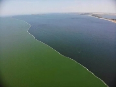 В сети показали фото, как в Николаевской области Днепро-Бугский лиман «встречается» с Черным морем, образуя четкую границу.