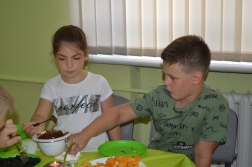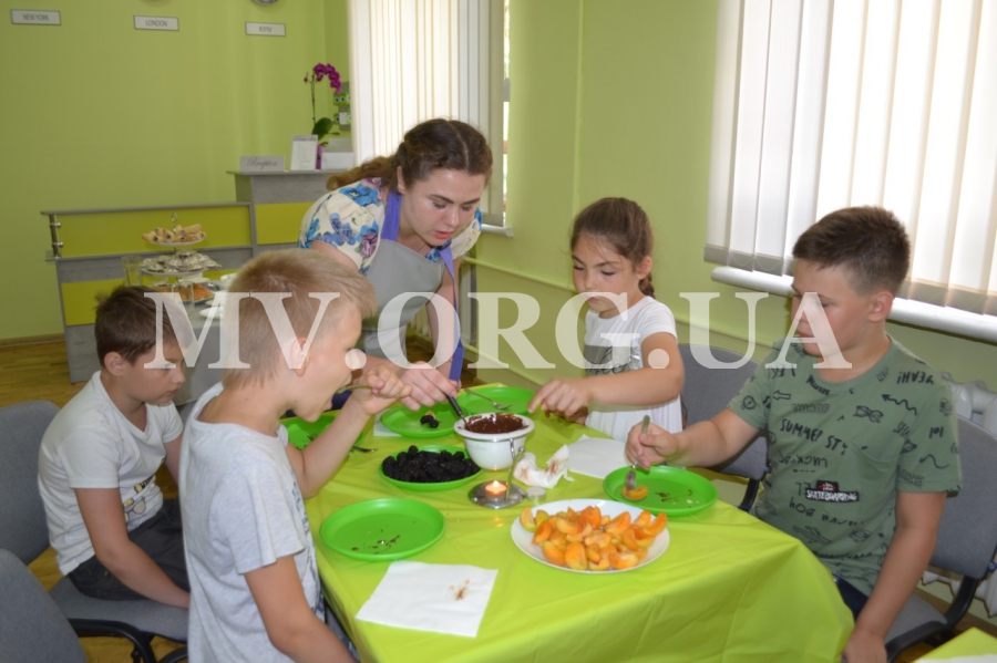 Педагоги кафедры экономики, управления и администрирования вместе со студентами специальности «гостинично-ресторанное дело» учили маленьких мелитопольцев готовить шоколадное фондю с фруктами.