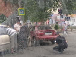 На месте работает полиция. Серьезных травм участники ДТП не получили.