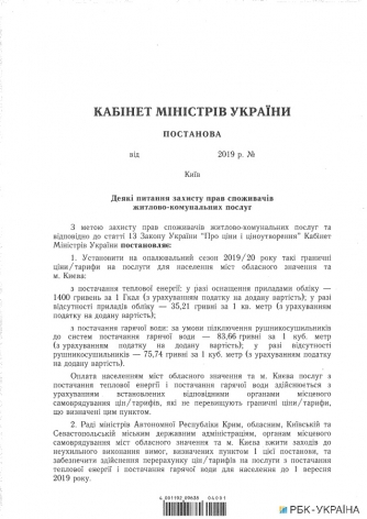 "Оплата населением городов областного значения и Киева услуг по поставке тепловой энергии и поставки горячей воды осуществляется с учетом установленных соответствующими органами местного самоуправления цен/тарифов, которые не превышают предельные цены/тарифы, которые определены", - говорится в тексте документа.