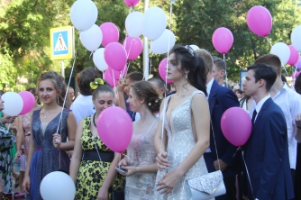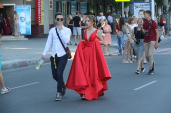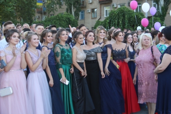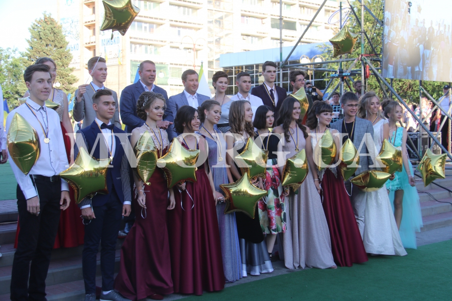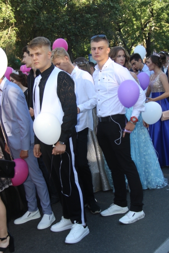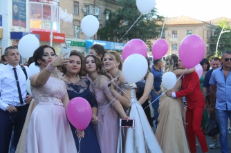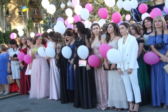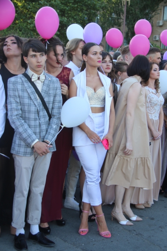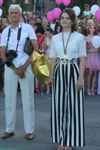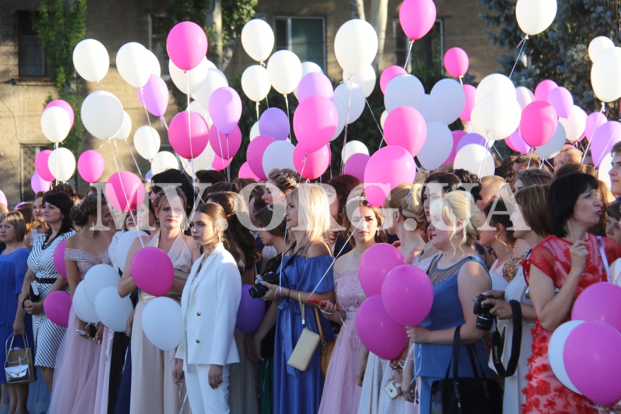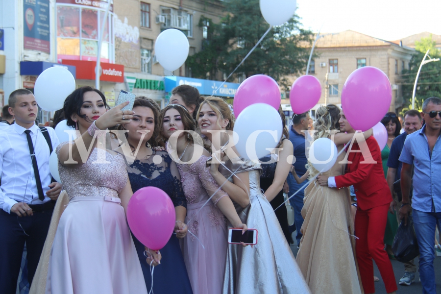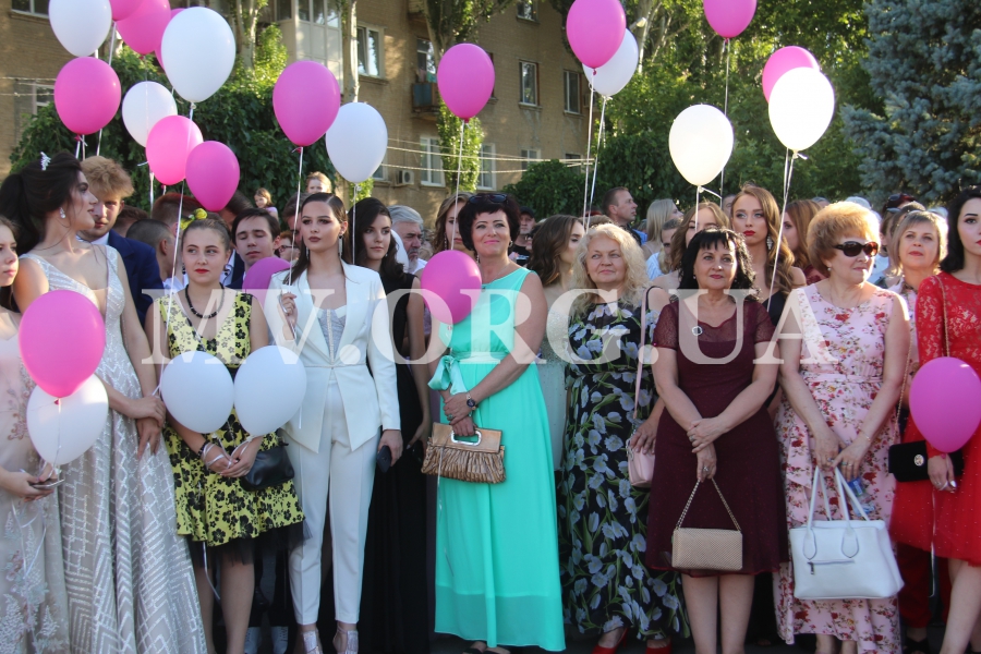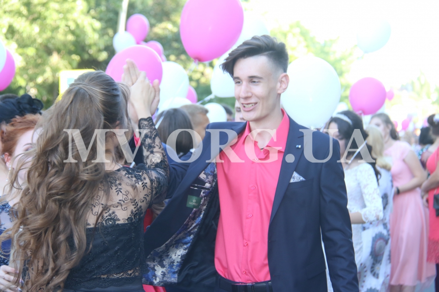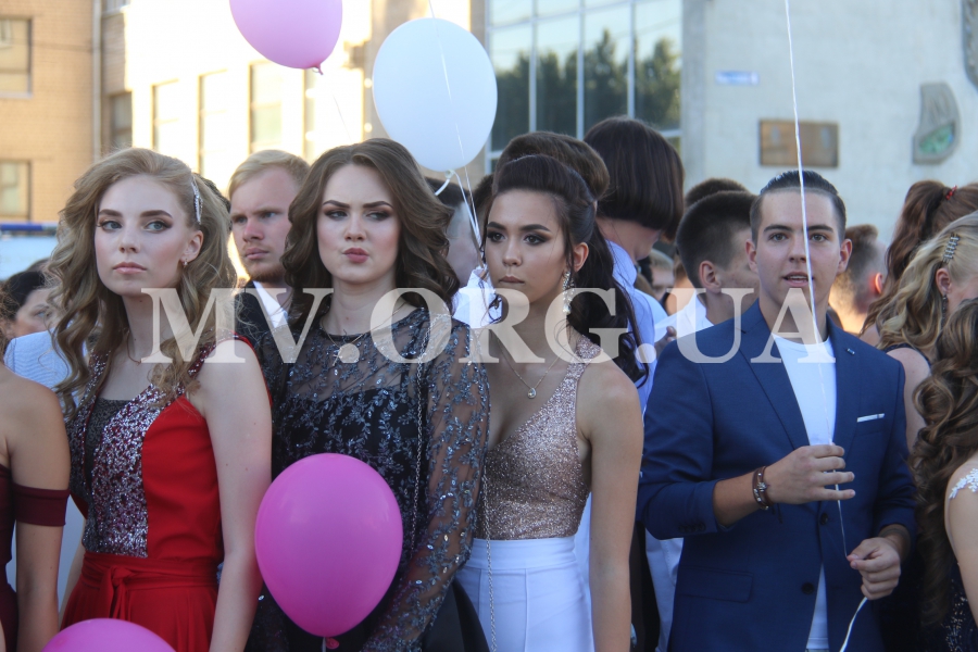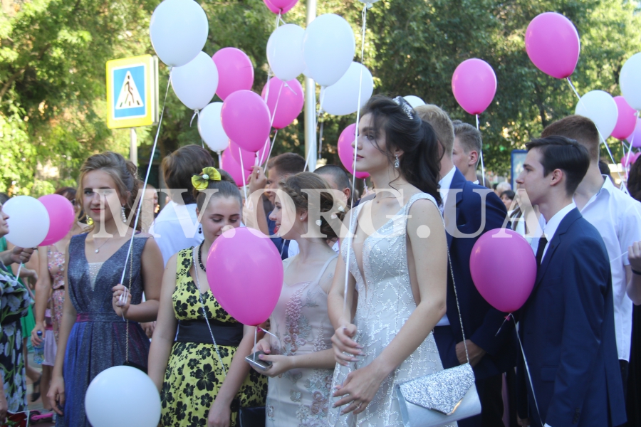 Начался выпускной бал с шествия одиннадцатиклассников по городскому проспекту. Отметим, что не все нынешние одиннадцатиклассники проигнорировали призыв министра образования Лилии Гриневич и таки устроили себе "эковыпускной" без шаров. Часть выпускников шествовали с шариками, которые в конце праздника улетели в небо.