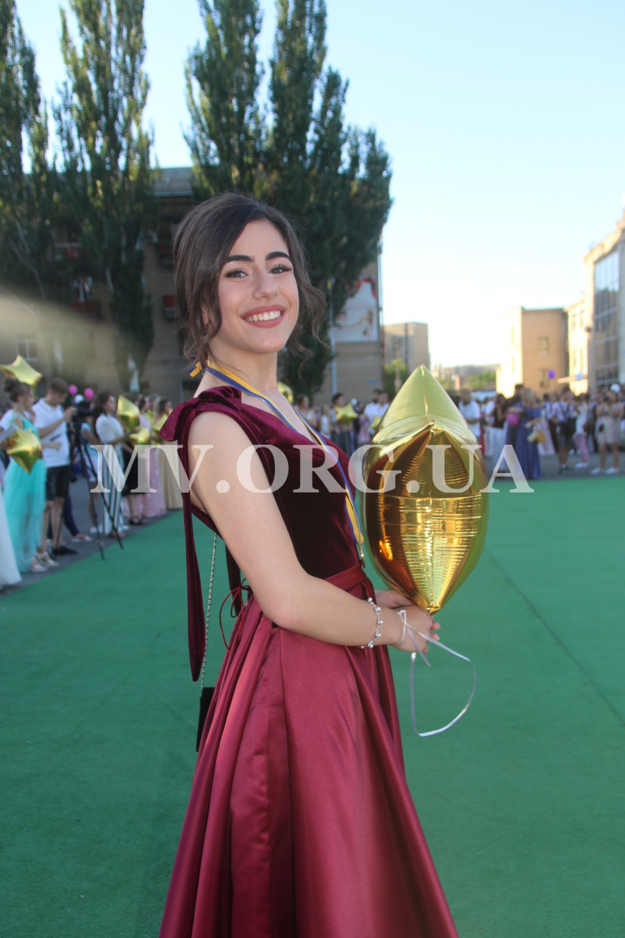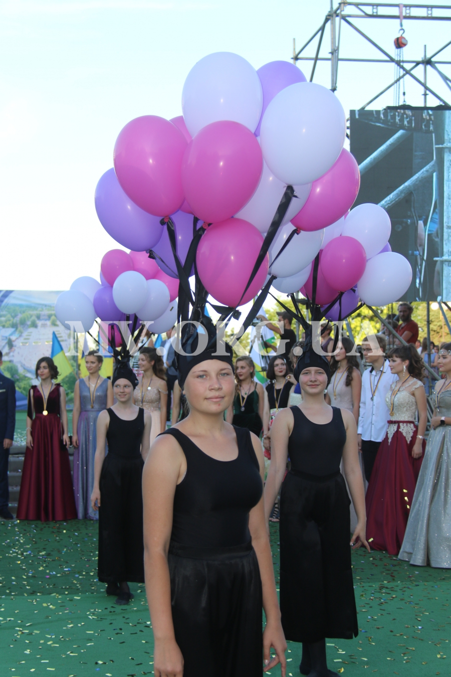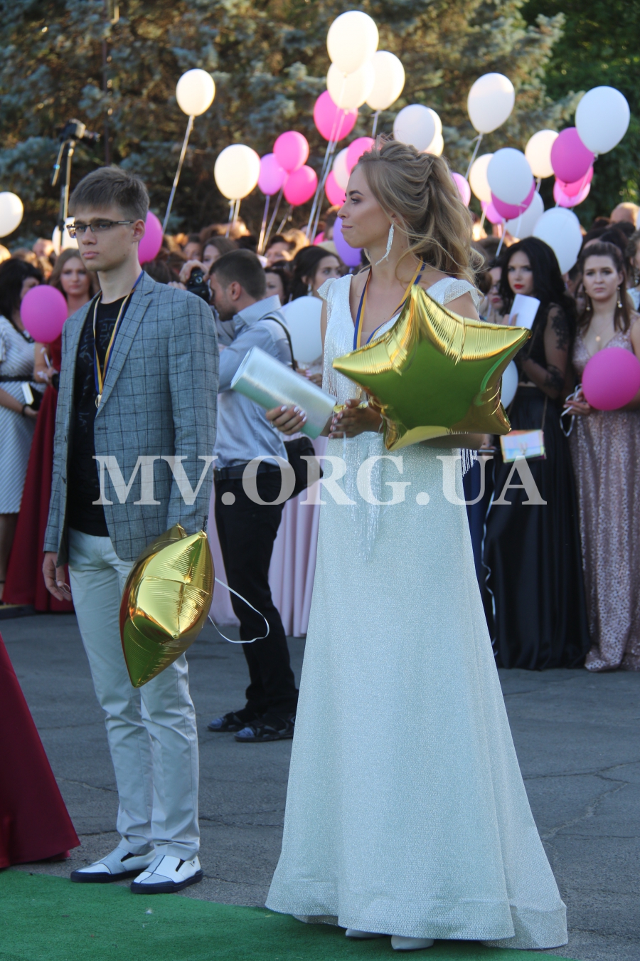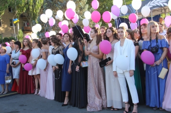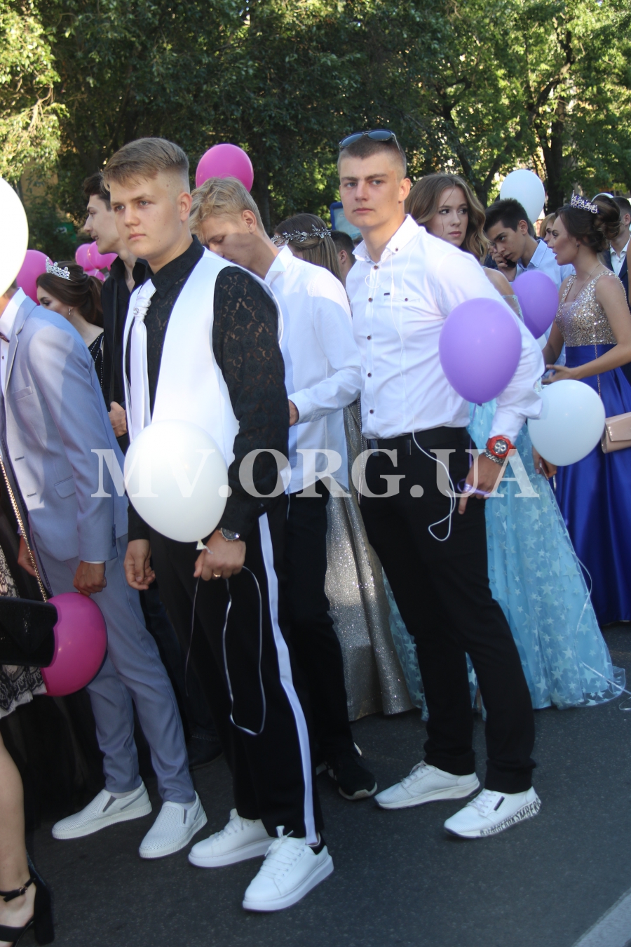 Начался выпускной бал с шествия одиннадцатиклассников по городскому проспекту. Отметим, что не все нынешние одиннадцатиклассники проигнорировали призыв министра образования Лилии Гриневич и таки устроили себе "эковыпускной" без шаров. Часть выпускников шествовали с шариками, которые в конце праздника улетели в небо.