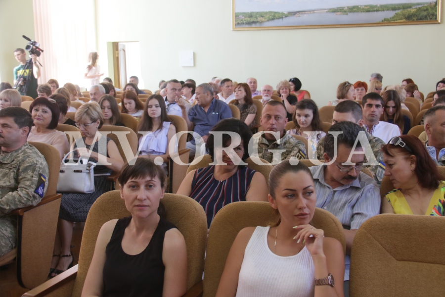 В большом зале мэрии собрались военнослужащие, волонтеры, представители талантливой молодежи - те, кто защищает Украину и делает ее лучше.