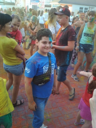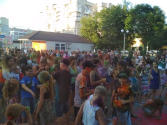 Мелитопольцы, в основном молодежь, собрались на площадке близ молодежного центра "People.ua", чтобы повеселиться и покидаться разноцветными красками холи.