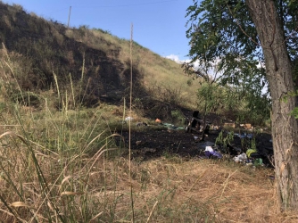 В Бердянске на склоне горы произошел пожар – горела сухая трава. Также огонь уничтожил ночлежку бездомных. К счастью, никто не пострадал.
