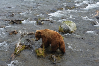 На Аляске, где недавно было зафиксировано землетрясение, в самом разгаре медвежья рыбалка. Камеры наблюдения сняли, как косолапые собираются целыми семьями у одного из водопадов в национальном заповеднике. Иногда в кадр попадает до 25 особей. Охотятся на лосося.