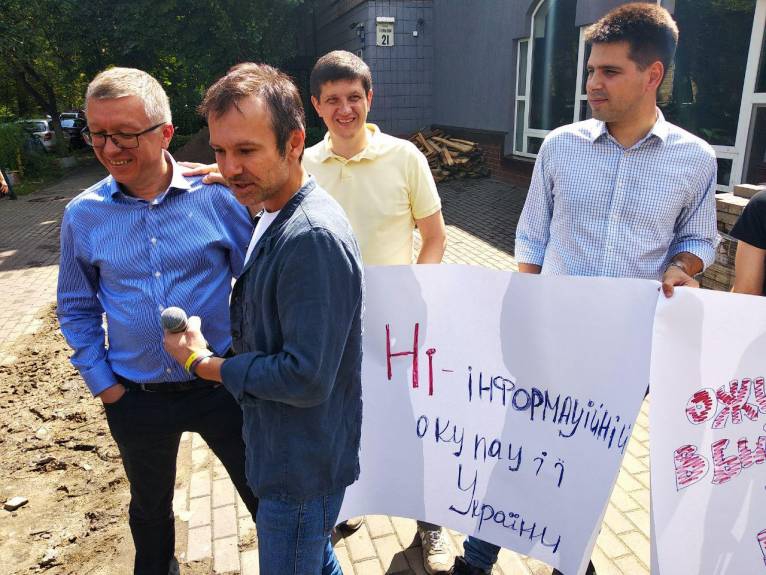 Вакарчук провел пикет возле телеканала NewsOne из-за телемоста Украины и РФ