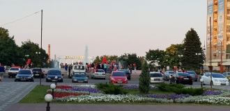 Машины с красными шариками проехались по городским улицам. После этого люди с шариками были замечены на главной площади.