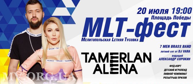 20 июля в 19.00 на площадь Победы стартует MLT-фест. В программе фестиваля: фуд-корт, пивной чемпионат, детский игроленд, выступление кавер-группы «7 men brass band», летний сет от Dj Vara и хиты от украинского R&B-дуэта «».