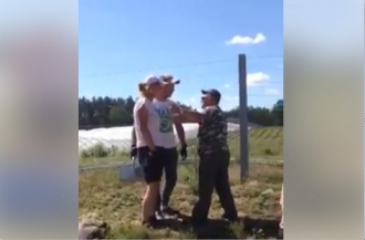На видео видно, как поляк на своем языке скандалит с украинцами среди поля, а затем предпринимает попытку применить физическую силу.