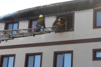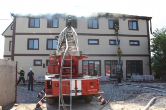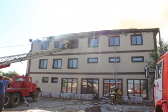 Как сообщалось ранее, сегодня на ул. Строительной в Мелитополе произошел пожар в сауне. Горел комплекс зданий. В частности, трехэтажное задние, где огонь распространился на площади 400 кв. м, охватив крышу и третий этаж, и деревянная постройка во дворе площадью 100 кв. м.