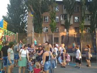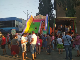 Собрались тысячи людей. Для детей работает "Игроленд" с батутами, тиром, горками и другими развлечениями.
