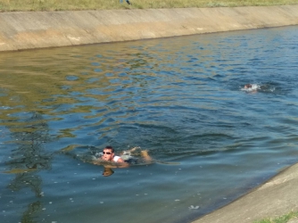 Уже закончился заплыв на полтора километра, который является частью триатлона.