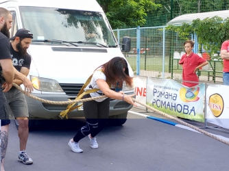 Самым зрелищным этапом было последнее упражнение Truck pull, спортсмены-мужчины тянули фуру, а у девушек была задача полегче - "всего лишь" микроавтобус.