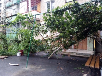 В Мелитополе бушует ураган и сметает все на своем пути, даже деревья.