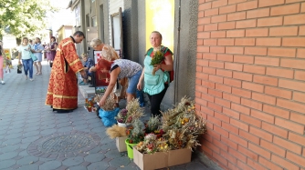 Молебен в соборе св. А. Невского начался в 7 утра, после 9.30 всех желающих святые отцы окропили водой. Торговля «маковейчиками» - традиционными букетиками из мака, чернобрывцев и различных сухоцветов, которые освящают люди, - началась еще на подступах к храму, у Центрального рынка. Но настоящий цветочный базар развернулся непосредственно у церкви. «Маковейчики» можно выбрать на любой вкус: скромный жмуточек маковых головок – от 5 грн, пучок из колосьев – от 10 грн, букет из живых чернобрывцев, «майорчиков», мяты или корзинки из сухоцветов – от 25 грн.