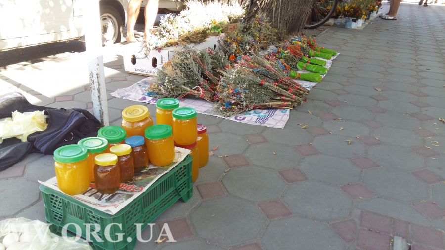 Кроме «маковейчиков» традиционно мелитопольцы освящают 14 августа еще и мед. Купить баночку можно тут же, у храма. За 0,25 л ароматного тягучего меда из разнотравья просят 25 грн. Столько же стоит и 0,3 л меда из подсолнуха. А для детворы продавцы припасли сладкие гостинцы – кусочки сот, наполненных медом (15-30 грн).