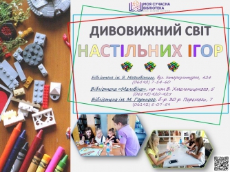 А во всех библиотеках города мелитопольцев ждут на различные интересные выставки. Также горожане могут поиграть в библиотеках в настольные игры.
