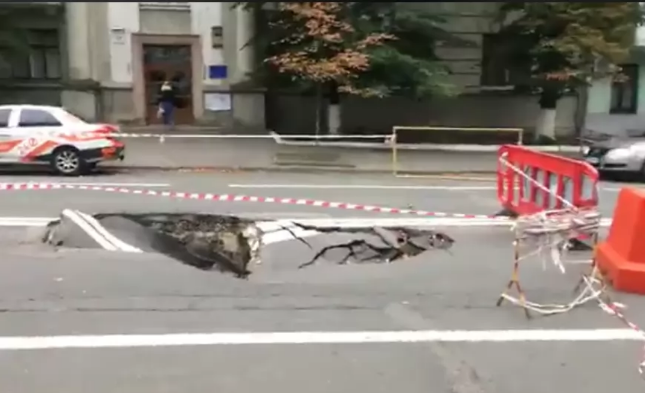 В Киеве на улице Лютеранской, рядом с Офисом президента провалился асфальт. Об этом пишут "Украинские новости".