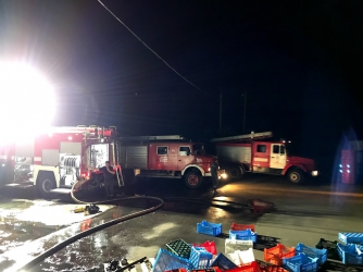 В ходе разведки спасатели установили, что горит пристройка к зданию на площади 200 кв. м и крыша над холодильной камерой на общей площади 500 кв. м.