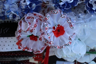 - В прошлом году впервые мы привезли банты с украинским орнаментом, тесьмой, искусственными маками или калиной, - рассказывает Ирина. – Популярны они в этом году. За 70-80 грн. можно купить очень оригинальные и стильные бантики в украинском стиле. Под вышиванку будет очень хорошо смотреться.