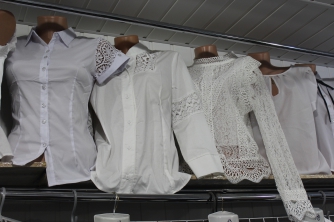 Цены, естественно, очень разные. Скромная футболочка с тонкой полосой кружева – от 100 грн. Классическая школьная блуза – от 230 грн. Ну а за стильные рубахи, экстравагантные блузоны и гипюровые наряды просят и 600-800 грн.