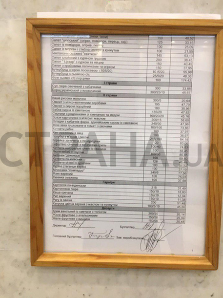 Перечень блюд не изменился с прошлого года, но позиции меню подорожали. Кофе теперь стоит 20 грн, салат "Цезарь" - 40,45 грн.