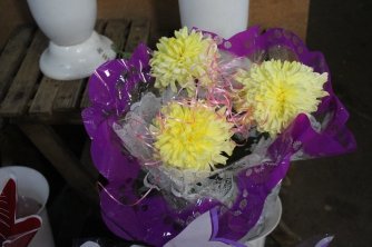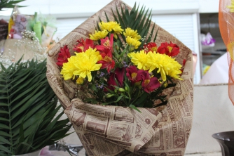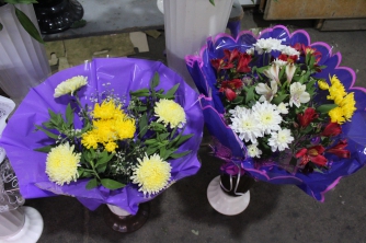 - букеты из разных цветов (розы + хризантемы, хризантемы + альстромерия и др.) - от 50 до 250 грн;