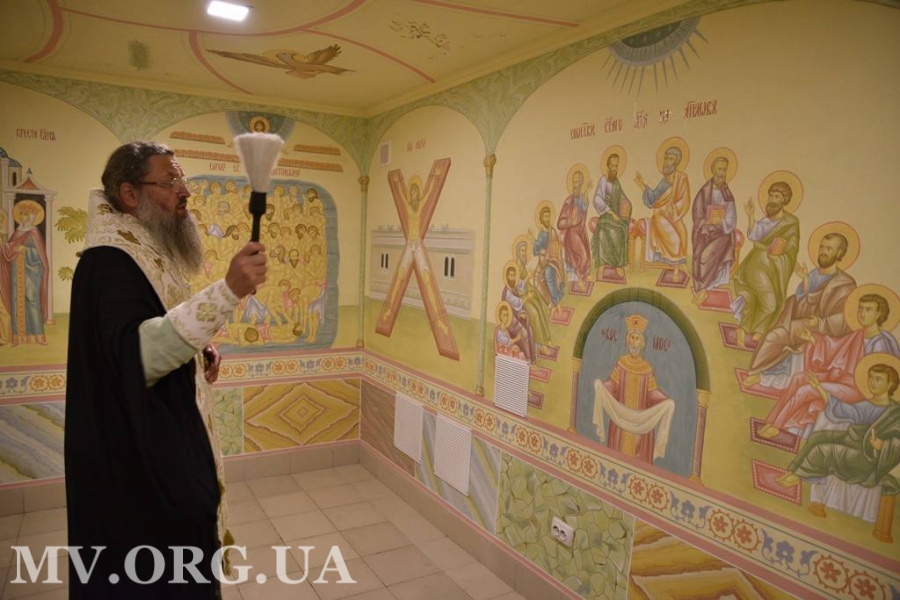Баптистерий (помещение для крещения) мелитопольского храма во имя Святого Георгия Победоносца преобразился. В последние дни августа там завершилась роспись стен, после чего крестильню освятил митрополит Лука.