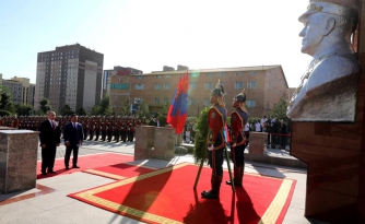 "Фото из Монголии. Кажется, Путина костюмеры одели в юбку - специально для президента Монголии", - заметил он.