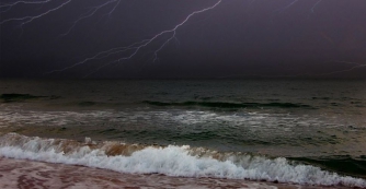 В такую погоду выйти на пляж никто не решился, кроме автора этого видео.