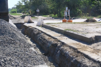 Именно поэтому было принято решение проложить трубу, которая будет собирать дождевую воду и выносить в русло ручья на ул. Строительной.