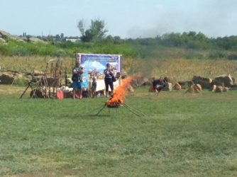 Мероприятие началось зажжением священного огня скифами. Затем, все кто хотел, мог поучаствовать в хороводе вокруг огня.