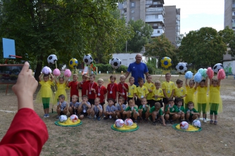 Футбол – любимая спортивная игра всех мальчишек. Ведь не секрет, что многие из них хотят стать настоящими футболистами. Но эмоции переполняли не только игроков. Болельщики изо всех сил поддерживали свои команды и участвовали в конкурсе «футбольных кричалок». В перерывах между матчами детвору веселили клоуны Хлоп и Топ. А настоящим подарком для всех стало выступление маленьких болельщиц из садика № 29 со спортивным музыкальным номером, в котором девочки использовали степ-платформы.