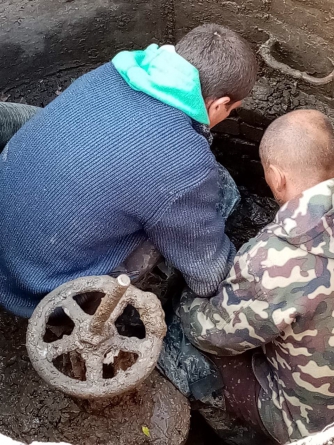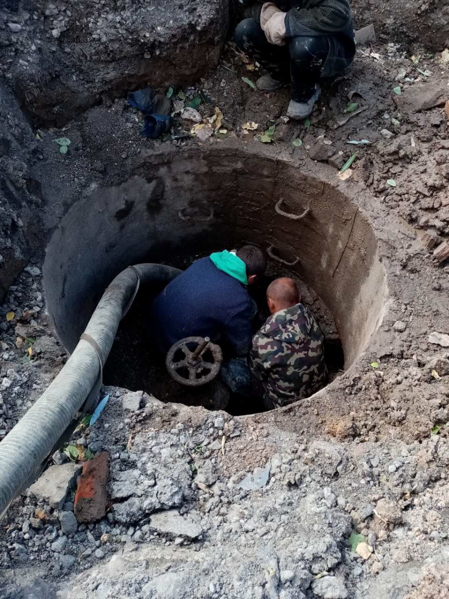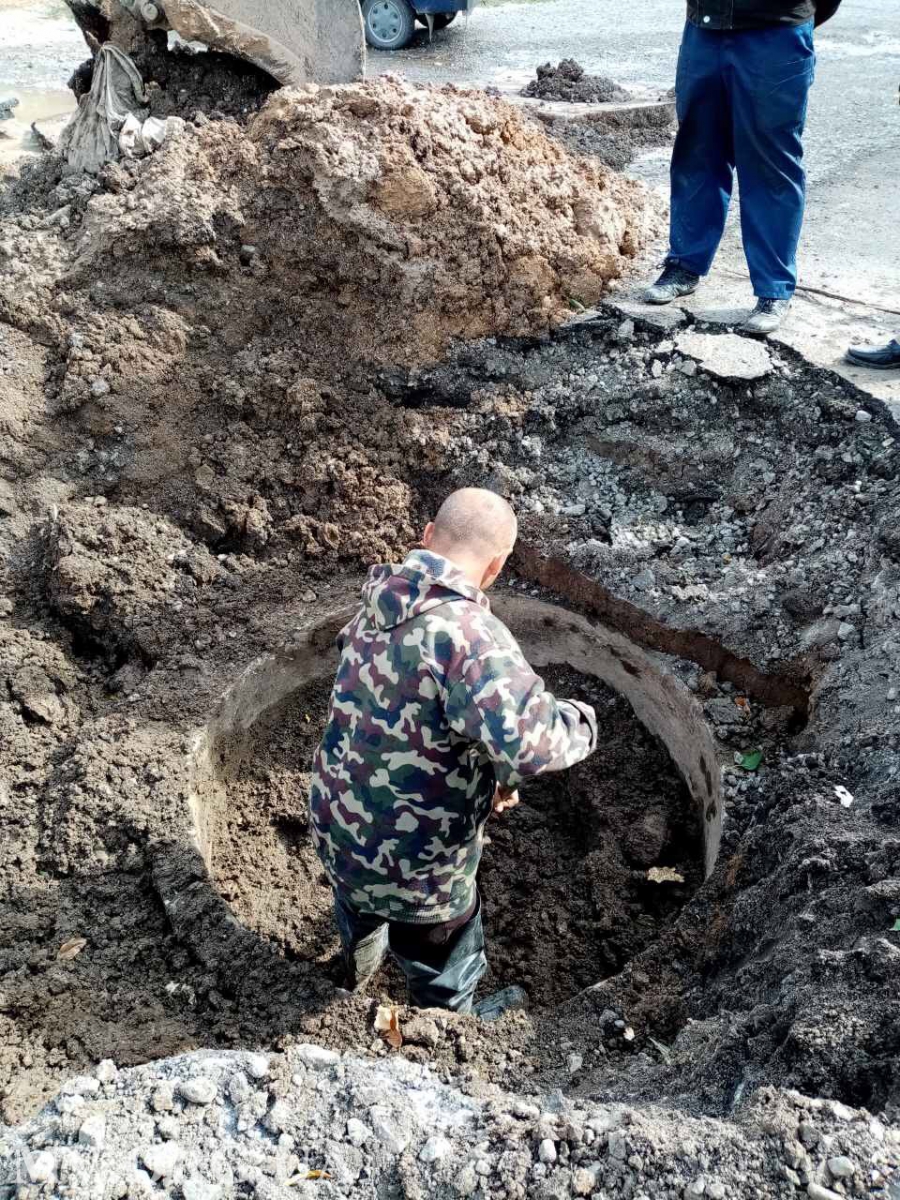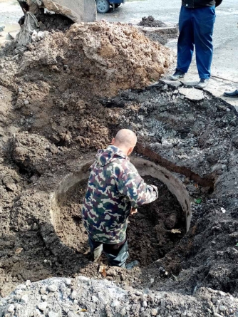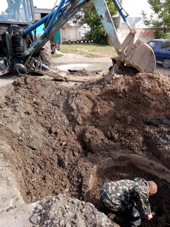 На место выехала бригада службы сетей водоснабжения КП "Водоканал". Работы усложнялись тем, что поврежденным оказался фланец (деталь для прочного и герметичного соединения труб и трубопроводной арматуры), расположенный в смотровом колодце. Чтобы заменить комплектующее изделие, необходимо было снять асфальт и провести земляные работы.