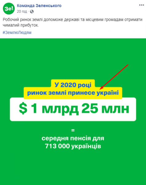 Дело в том, что авторы публикации написали: "У 2020 році ринок землі принесе Україні $1 млрд 25 млн = середня пенсія для 713 тисяч українців". Но при этом слово "Україні" в команде президента написали с маленькой буквы.