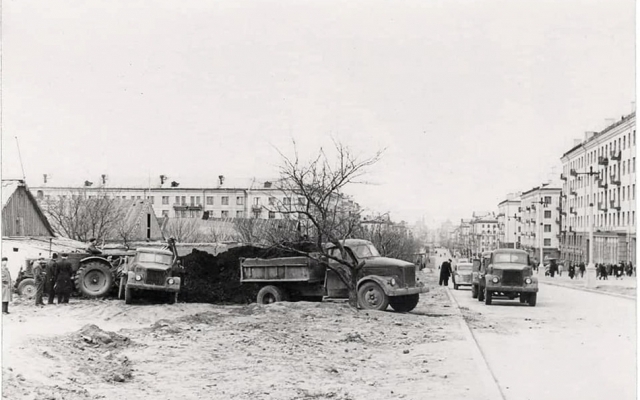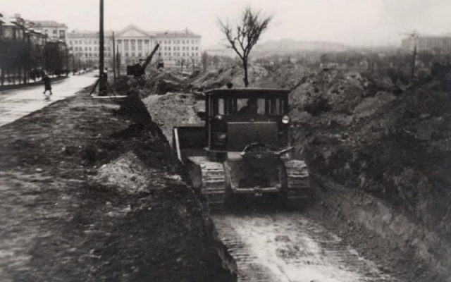 На одном из кадров показан этап строительства бульвара Шевченко, который ранее был проспектом Жданова.