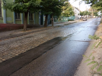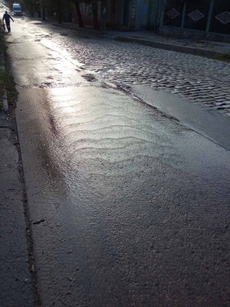 На улице Интеркультурной, в районе перекрестка с ул. Чернышевского, случился порыв. Из-под плит забил несанкционированный родник, похоже, что питьевой воды. Во всяком случае, сходный порыв на улице Покровской, который произошел несколько месяцев назад, был именно на водоводе.
