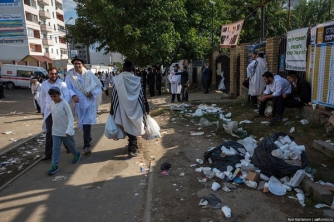 Десятки тысяч хасидов, которые прибыли в Умань для празднования еврейского Нового года Рош ха-Шана оставили после себя очень много мусора. В основном это бутылки из-под алкогольных напитков и пластиковые стаканчики.
