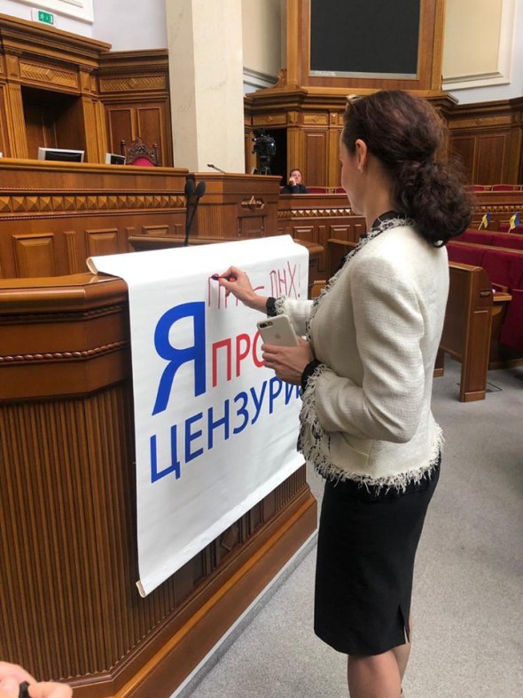 Ранее фракция "Оппозиционной платформы - За жизнь" вывесила на трибуну баннер "Я против цензуры" в защиту телеканала "112 Украина" кума Путина Виктора Медведчука.